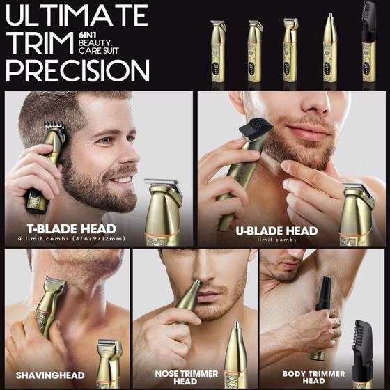 Complete Grooming Kit for Men: این کیت همهکاره، شامل 4 عدد شانه محدود برای طولهای مختلف مو، سرهای T و U شکل برای استایلهای پیچیده، و لوازم ضروری برای نگهداری است. ایدهآل برای استفاده شخصی در منزل و یک هدیه بینظیر برای هر مناسبت.
