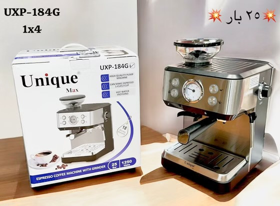 اسپرسو ساز یونیک مکس 184 یک دستگاه اسپرسو ساز با ویژگیهای زیر است: پمپ 25 بار، آسیاب قهوه سرخود، توان 1350 وات، قابلیت تهیه اسپرسو تک و دوبل و قطع کن خودکار. این دستگاه برای مصارف خانگی و نیمه صنعتی مناسب است و همچنین قابلیت تولید فوم شیر برای تهیه کاپوچینو و لاته را دارد.