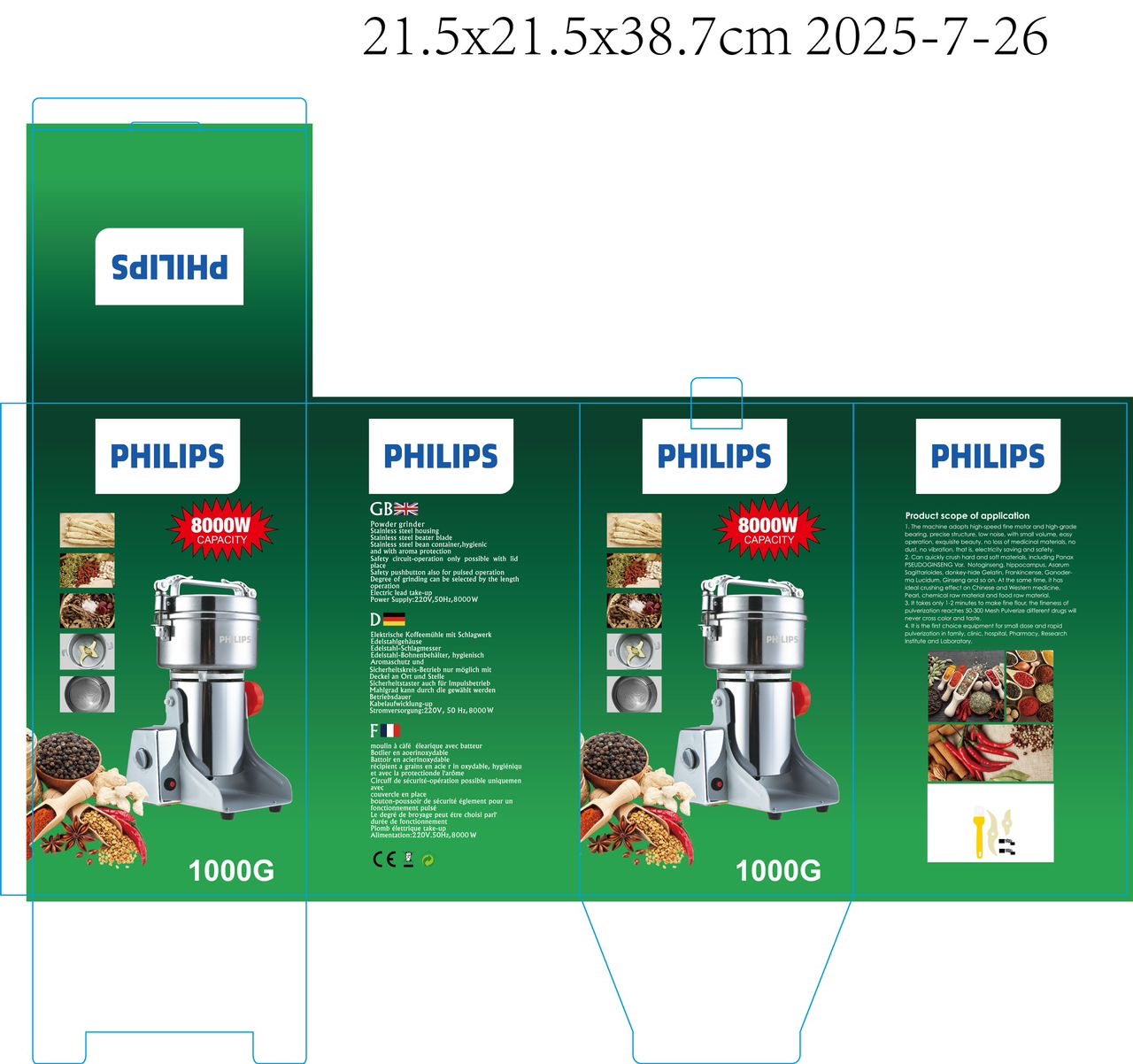 آسیاب گهواره ای ۱۰۰۰ گرم فیلیپس-قدرت 8000W وات-تیغه طلایی
