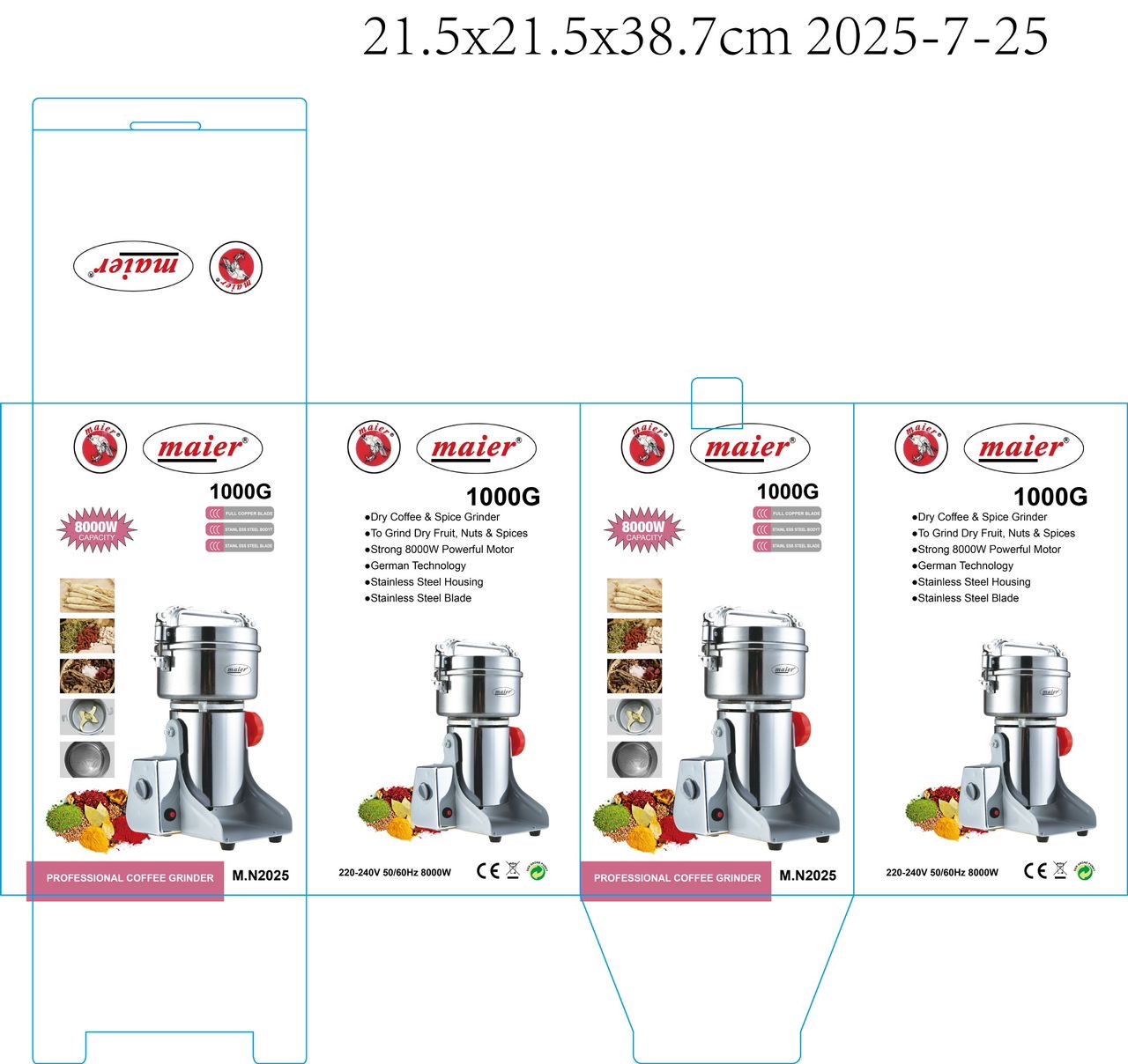 آسیاب گهواره ای ۱۰۰۰ گرم مایر-قدرت 8000W وات-تیغه طلایی